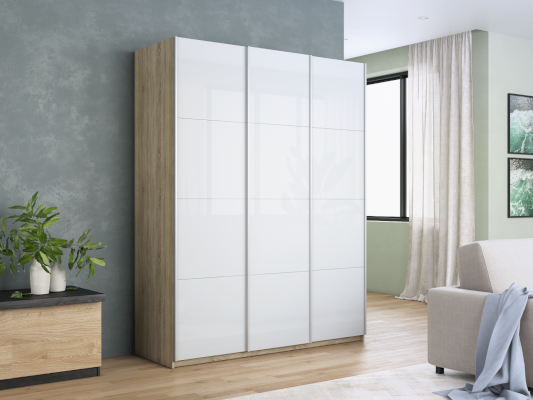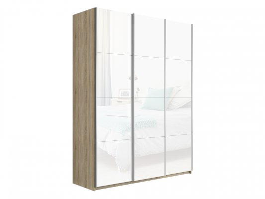 Шкаф-купе 3-х дверный Прайм Белое стекло/Белое стекло/Белое стекло 1800х2300х570 мм Сонома