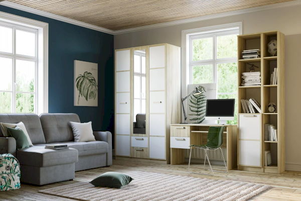 Стол для компьютера НМ 009.19-05 М2 поможет обустроить комфортный учебный уголок в детской. На рабочей поверхности модуля достаточно места для размещения стационарного компьютера, ноутбука.Удобная выдвижная полка для клавиатуры позволит сохранить место на рабочем столе. Закругленные углы столешницы делают эксплуатацию модуля безопасной для ребенка и взрослого. По окончании занятий ребенок сможет убрать книги и тетради в выдвижные ящики для поддержания порядка на рабочем месте.