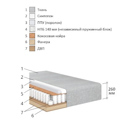 Наполнитель синтепон / пружинный блок / пенополиуретан (ППУ)