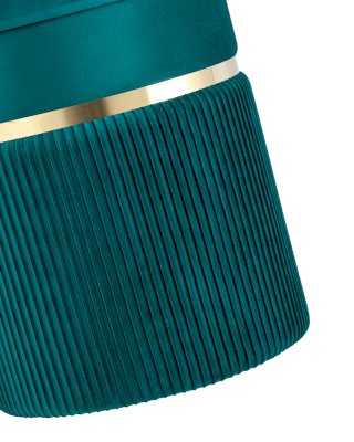Лаконичная модель пуфа в обивке из мягкого велюра, которая дополнит интерьер вашего дома. Обивка красиво украшена декоративными оборками и металлическим ободком в золотом цвете. Под сиденьем имеется ящик для хранения различных мелочей. В основании предусмотрены специальные подпятники, которые делают пуф более устойчивым и предотвращают скольжение.