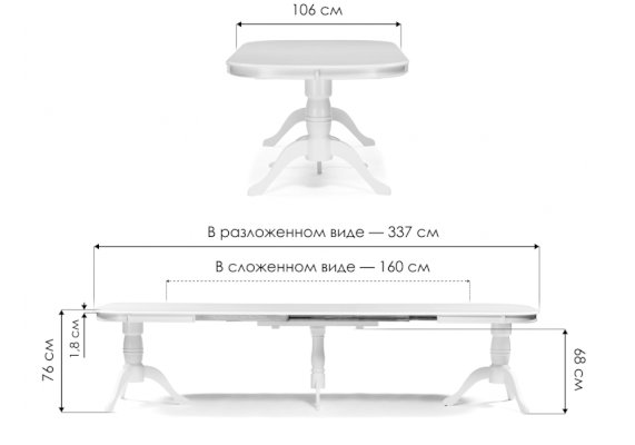 | Длина разложенного столика, мм | 3370 |