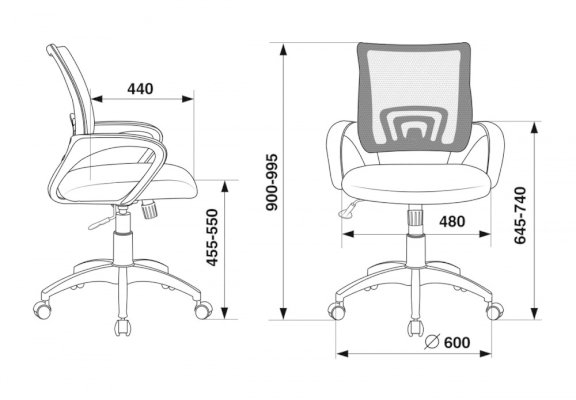Высота кресла: 890-985