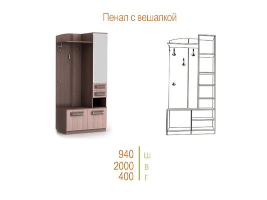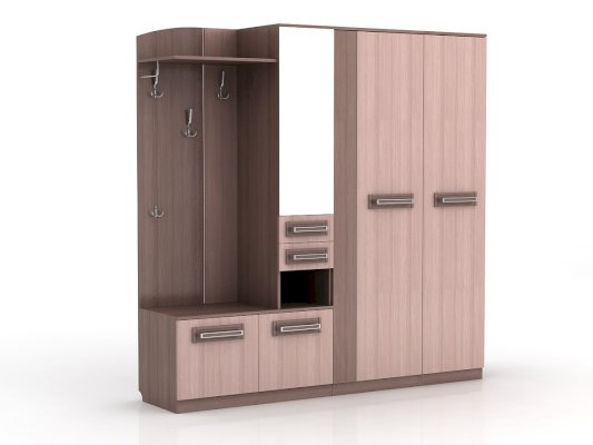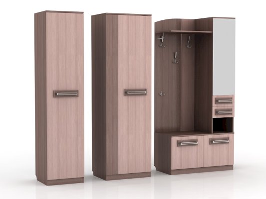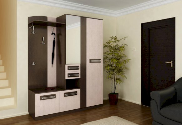 Венге/ Липа Светлана                  Отличительные особенности прихожей — функциональный дизайн и современные оттенки текстур. Конструкция данной модели включает в себя все необходимое: зеркало, шкаф, пенал, вешалки, ящики и множество полок для различных мелочей.