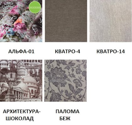 Вы можете выбрать обивку из предложенных вариантов. Если вы не нашли подходящего варианта, можете выбрать любую понравившуюся ткань на сайте производителя:
