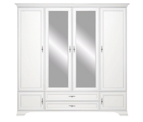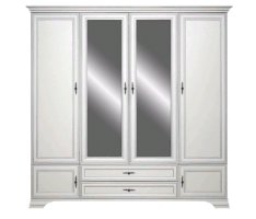 4 распашных двери, за боковыми глухими дверями расположены полки.