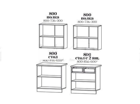 | Высота нижних шкафов, мм | 846 |