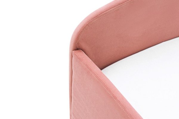 Кровать изготовлена из ЛДСП класса Е1. ЛДСП обклеивается поролоном 10 мм, далее кровать обшивается чехлом из велюра или рогожки. В результате, бортики получаются мягкие и безопасные для сна.