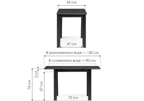 | Длина разложенного столика, мм | 1300 |