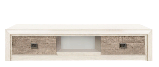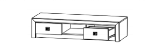 Тумба состоит из трех отделений: одной открытой полки и двух выдвижных ящиков.