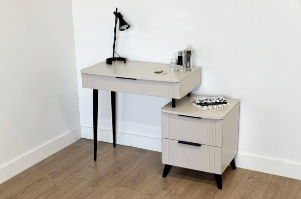 Представляем вам элегантный и функциональный туалетный столик «Катрин»! Этот предмет мебели станет стильным дополнением к вашей спальне и предоставит удобное место для хранения вещей, а также может использоваться как письменный стол.