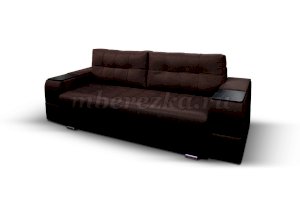 Диван со столиком значительно экономит пространство в помещении и, несомненно, делает отдых на диване комфортнее, ведь буквально под рукой есть раскладной столик в подлокотнике, на который можно поставить бокал, положить книгу или журнал, удобен при работе с ноутбуком. Другой подлокотник оборудован выдвижными полочками для хранения различных вещей. Большой ящик для белья внутри дивана, простой, и надежный механизм трансформации «тик-так» подтверждают функциональность этой модели. Блок независимых пружин, прошивка на сиденье – гарантия длительной эксплуатации дивана.