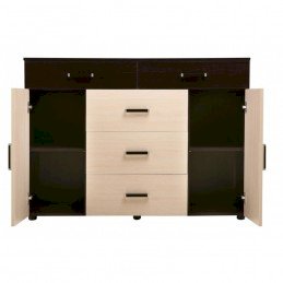 Среди комодов линейки Вега модель К-03 самая функциональная. В ее конструкции предусмотрены 5 выдвижных ящиков и две закрытые ниши с полками, поэтому К-03 идеально подойдет для гардероба.