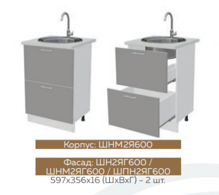 Глубина нижних шкафов без учета столешницы: 444 мм, с учетом столешницы 600 мм