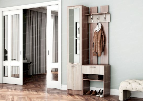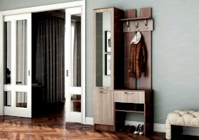 варианты цветовых решений                  Изящная, аккуратная прихожая «Фортуна» занимает совсем немного места. Она элегантна, вместительна и удобна в эксплуатации. Модель изготовлена из недорогих качественных материалов. Ламинированное покрытие очень точно повторяет оттенки и текстуру древесины ценных пород, к которым хорошо подходит простенькая металлическая фурнитура.